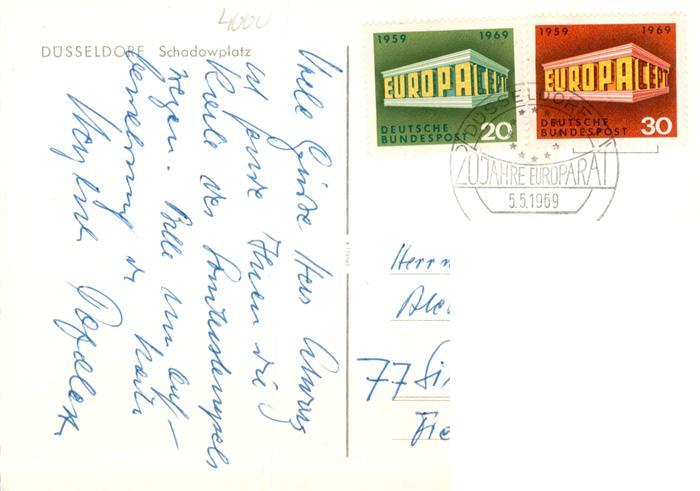 73943915 DuessELDORF CITY Schadowplatz Hochhaus postalisch gelaufen Erhaltung siehe scans [FriedD77] alte Postkarte Frie Katcode 11110005111000