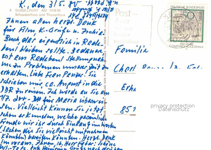 72806766 alte Postkarte DuessELDORF CITY Schauspielhaus Thyssenhaus postalisch gelaufen Erhaltung siehe scans [FriedD77] KatCode: 11110005111000