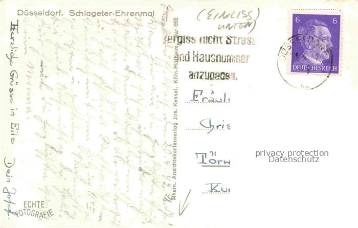 74122189 alte Postkarte DuessELDORF CITY Schlageter-Ehrenmal postalisch gelaufen Erhaltung siehe scans [FriedD77] KatCode: 11110005111000