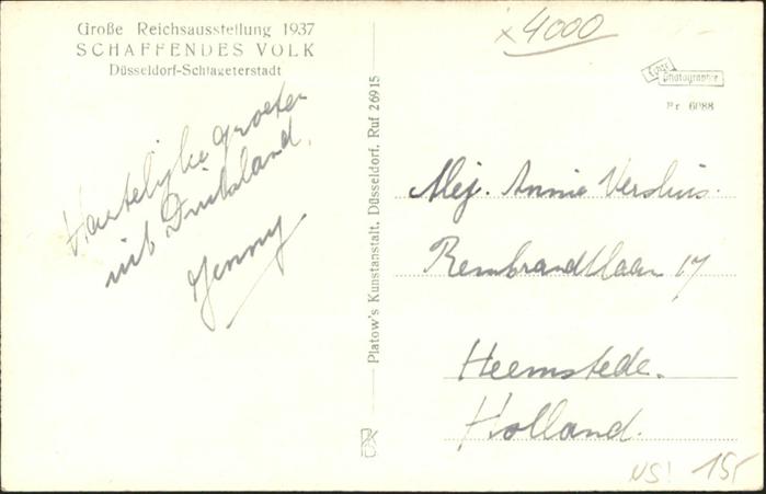 40955021 DuessELDORF CITY Schlageterstadt Schaffendes Volk Haupteingang NZ4 postalisch nicht gelaufen Alte Ansichtskarte Postkarte Katcode 11110005111000
