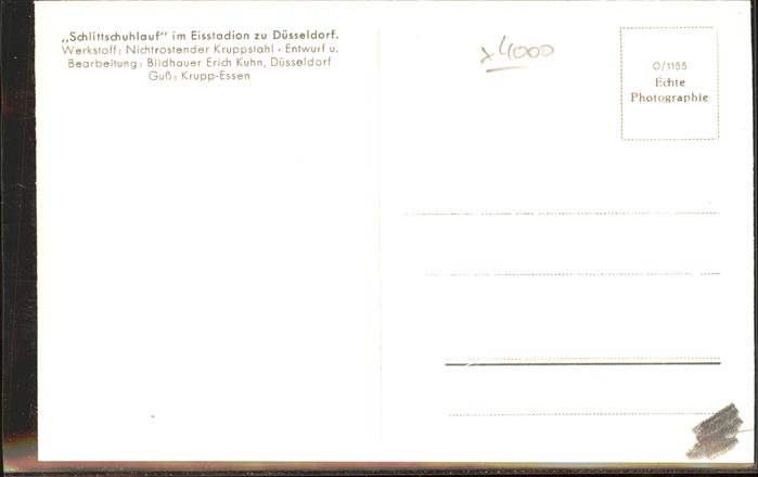 41397765 DuessELDORF CITY Schlittschuhlauf im Eisstadion Bildhauer Erich Kuhn postalisch nicht gelaufen gute Erhaltung Alte Ansichtskarte Postkarte hz_L Katcode 11110005111000