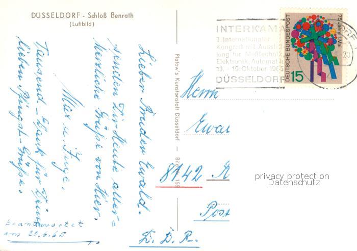 73713875 DuessELDORF CITY Schloss Benrath Fliegeraufnahme postalisch gelaufen Erhaltung siehe scans [WerneD78] alte Postkarte Wern Katcode 11110005111000