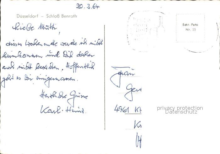 72347783 alte Postkarte DuessELDORF CITY Schloss Benrath Teich postalisch gelaufen Erhaltung siehe scans KatCode: 11110005111000