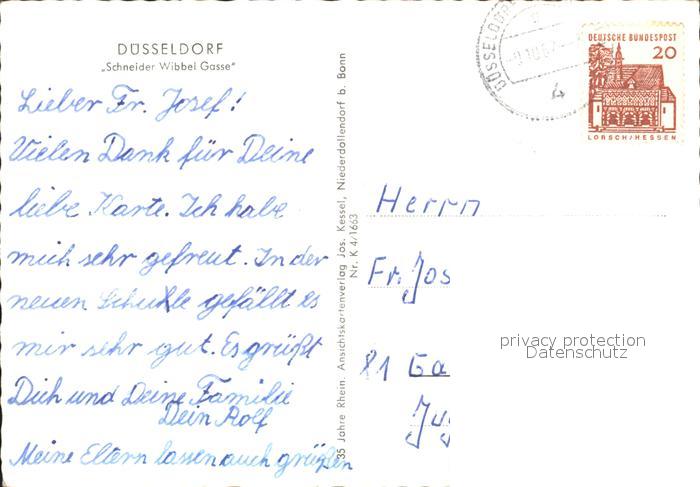72072603 alte Postkarte DuessELDORF CITY Schneider Wibbel Gasse Strassencafe postalisch gelaufen Erhaltung siehe scans KatCode: 11110005111000
