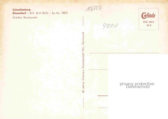 74042647 DuessELDORF CITY Schnellenburg Grosses Restaurant postalisch nicht gelaufen Erhaltung siehe scans [FriedD77] Frie Katcode 11110005111000