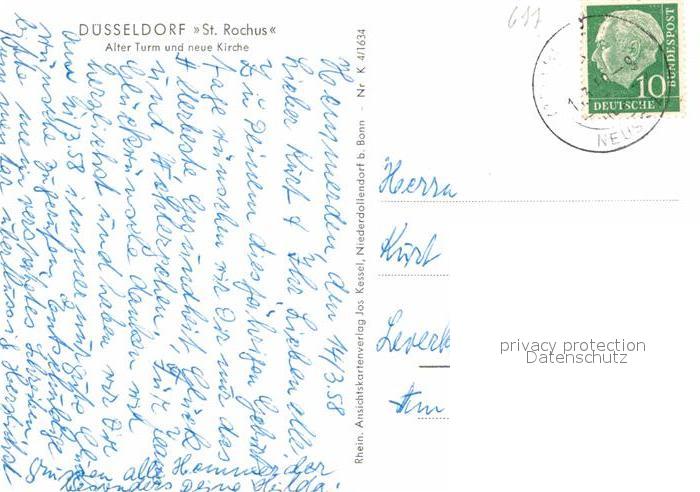 72829831 alte Postkarte DuessELDORF CITY St. Rochus Alter Turm und neue Kirche postalisch gelaufen Erhaltung siehe scans [LiesaD40] KatCode: 11110005111000