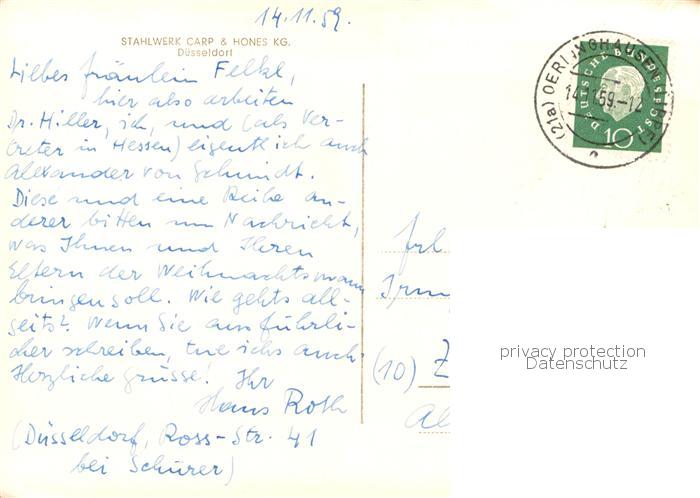 73832061 DuessELDORF CITY Stahlwerke Carp und Hones KG postalisch gelaufen Erhaltung siehe scans [WerneD78] alte Postkarte Wern Katcode 11110005111000