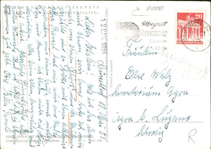 41398923 DuessELDORF CITY Stiller Winkel mundgemalt Arnulf Erich Stegmann postalisch gelaufen Alte Ansichtskarte Postkarte alte Postkarte hz_C Katcode 11110005111000