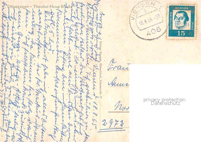 72833528 alte Postkarte DuessELDORF CITY Theodor Heuss Bruecke Rhein postalisch gelaufen Erhaltung siehe scans [FriedD77] KatCode: 11110005111000