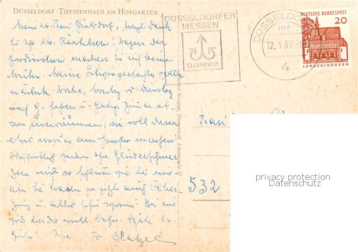 73833842 DuessELDORF CITY Thyssenhaus am Hofgarten postalisch gelaufen Erhaltung siehe scans [FriedD77] alte Postkarte Frie Katcode 11110005111000