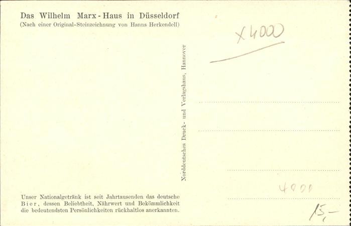 41399403 DuessELDORF CITY Wilhelm Marx Haus Kuenstlerkarte nach Steinzeichnung von Hanns Herkendell postalisch nicht gelaufen gute Erhaltung Alte Ansichtskarte Postkarte hz_F Katcode 11110005111000