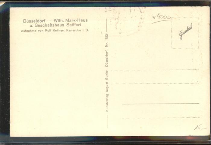 41398412 DuessELDORF CITY Wilhelm Marx Haus und Geschaeftshaus Seiffert postalisch nicht gelaufen gute Erhaltung Alte Ansichtskarte Postkarte hz_W Katcode 11110005111000