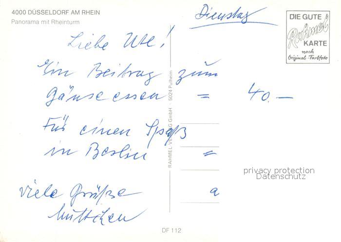 73060117 Duesseldorf Fliegeraufnahme mit Rheinturm postalisch nicht gelaufen Erhaltung siehe scans [FriedD77] KatCode: 11110005111000