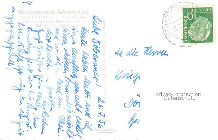 73540332 alte Postkarte Duesseldorf Fliegeraufnahme Rheinrestaurant Schnellenburg postalisch gelaufen Erhaltung siehe scans [LiesaD40] KatCode: 11110005111000