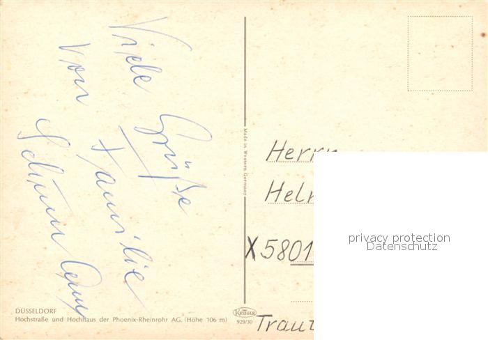 73063408 alte Postkarte Duesseldorf Hochstrasse Hochhaus Phoenix Rheinrohr AG postalisch gelaufen Erhaltung siehe scans [KathaD81] KatCode: 11110005111000
