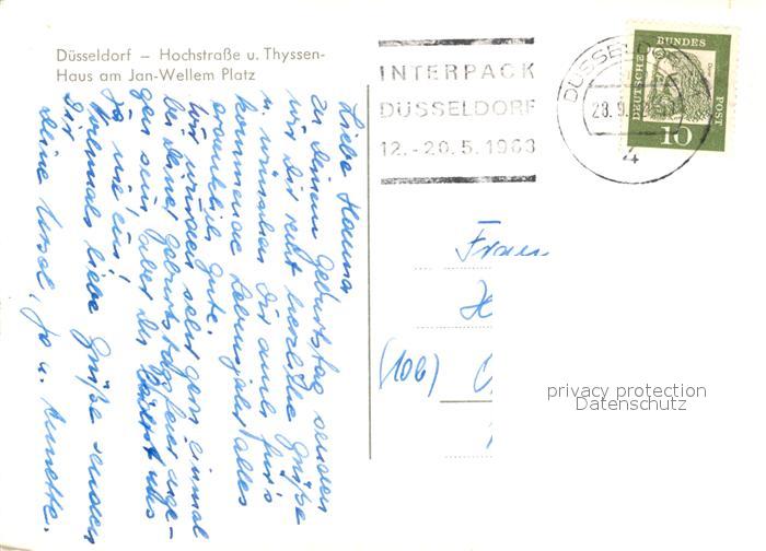 73034175 alte Postkarte Duesseldorf Hochstrasse Thyssenhaus Jan Wellem Platz postalisch gelaufen Erhaltung siehe scans [KathaD81] KatCode: 11110005111000