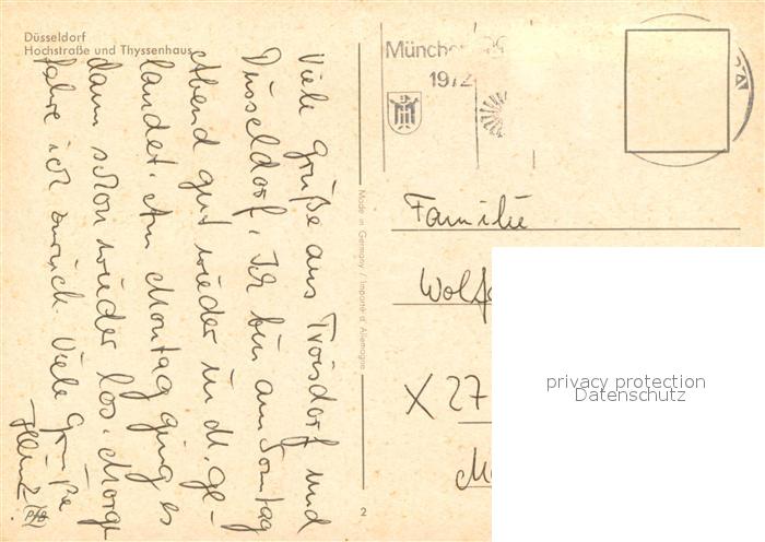 73618442 alte Postkarte Duesseldorf Hochstrasse und Thyssenhaus Hochhaus postalisch gelaufen Erhaltung siehe scans [FriedD77] KatCode: 11110005111000