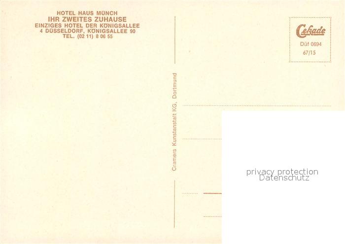 73614941 Duesseldorf Hotel Haus Muench postalisch nicht gelaufen Erhaltung siehe scans [WerneD78] KatCode: 11110005111000