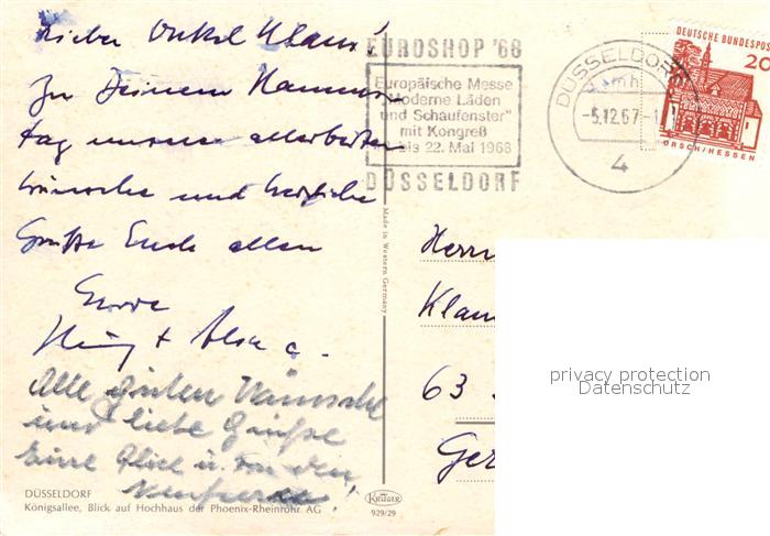 73001512 alte Postkarte Duesseldorf Koenigsallee Hochhaus postalisch gelaufen Erhaltung siehe scans [AndreD76] KatCode: 11110005111000