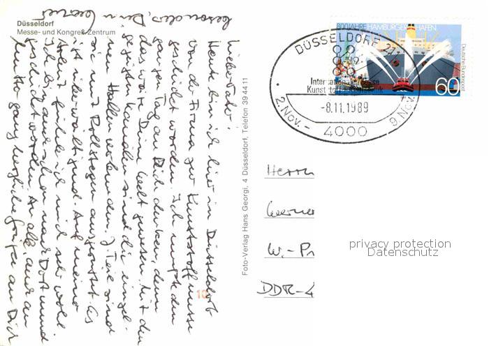 72911885 alte Postkarte Duesseldorf Messe- Kongress-Zentrum postalisch gelaufen Erhaltung siehe scans [NatalD47] KatCode: 11110005111000