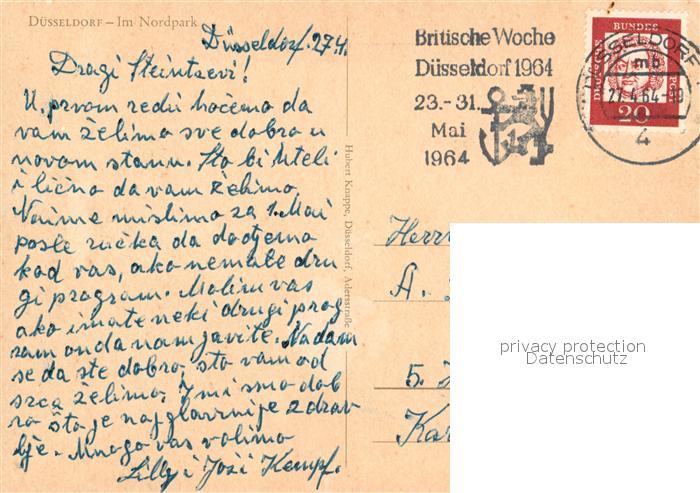 73618060 alte Postkarte Duesseldorf Nordpark postalisch gelaufen Erhaltung siehe scans [KathaD81] KatCode: 11110005111000