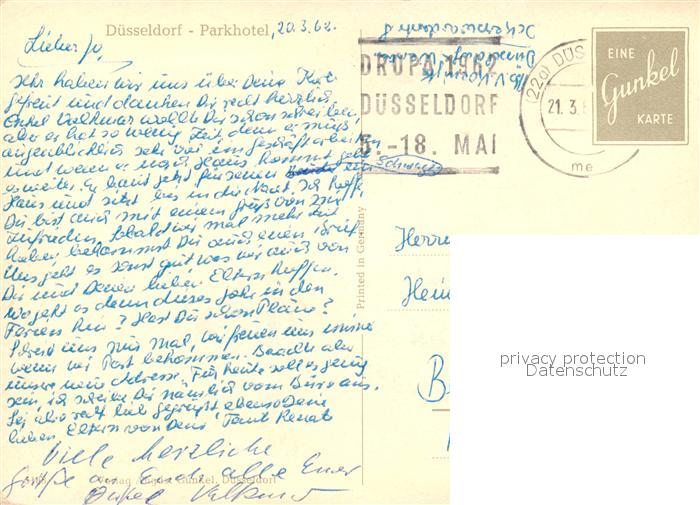 73104650 alte Postkarte Duesseldorf Parkhotel postalisch gelaufen Erhaltung siehe scans [WerneD78] KatCode: 11110005111000