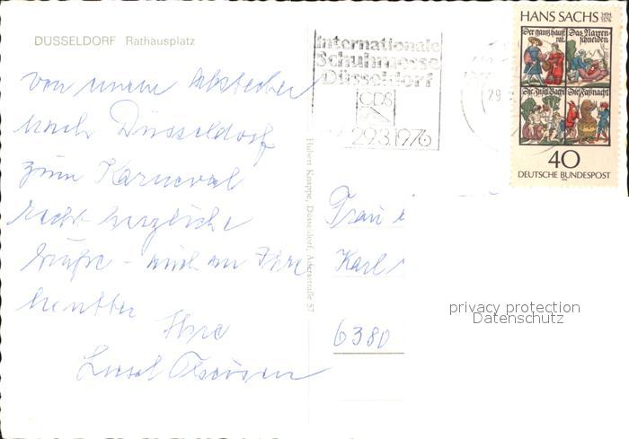 alte Postkarte Duesseldorf Rathausplatz postalisch gelaufen Erhaltung siehe scans