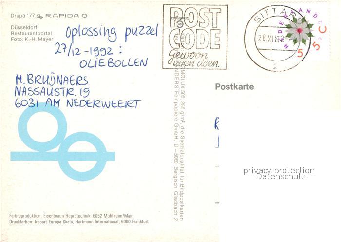 72936427 alte Postkarte Duesseldorf Restaurant Portal Skulptur postalisch gelaufen Erhaltung siehe scans [FriedD77] KatCode: 11110005111000