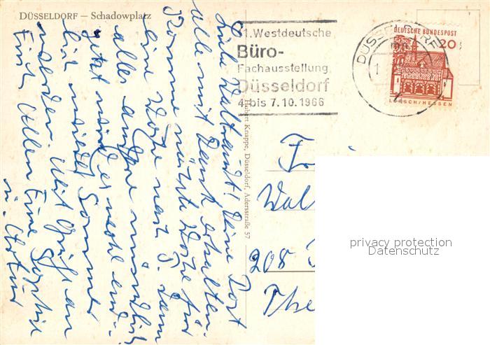 73021654 alte Postkarte Duesseldorf Schadowplatz postalisch gelaufen Erhaltung siehe scans [WerneD78] KatCode: 11110005111000