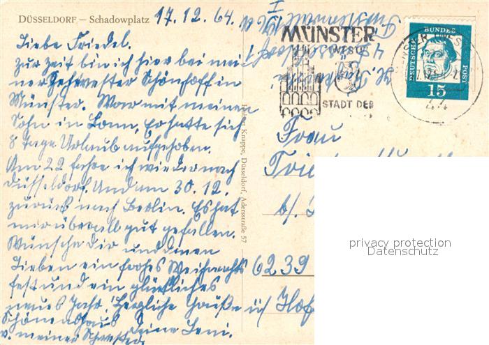 73059946 alte Postkarte Duesseldorf Schadowplatz postalisch gelaufen Erhaltung siehe scans [WerneD78] KatCode: 11110005111000