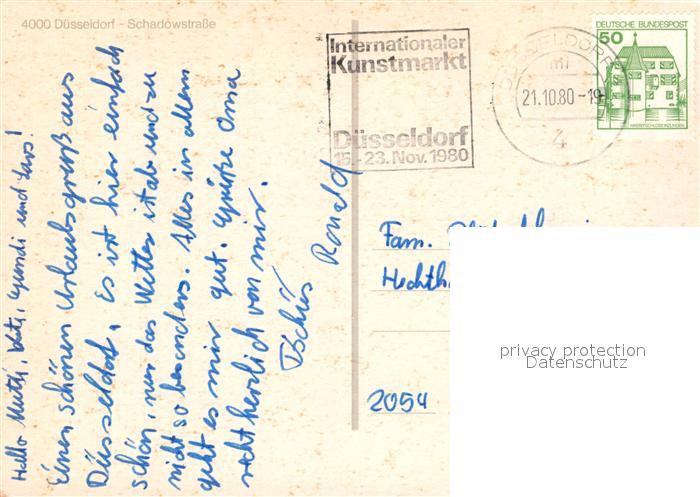 73131546 alte Postkarte Duesseldorf Schadowstrasse postalisch gelaufen Erhaltung siehe scans [NatalD47] KatCode: 11110005111000