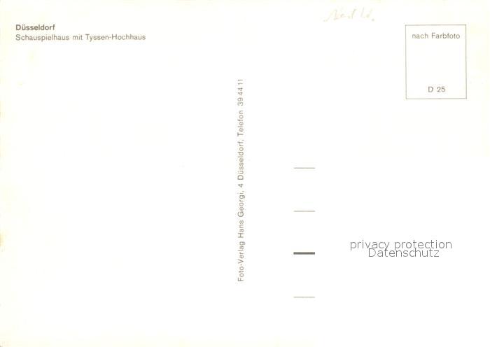 73123151 Duesseldorf Schauspielhaus mit Tyssen-Hochhaus postalisch nicht gelaufen Erhaltung siehe scans [LiesaD40] KatCode: 11110005111000