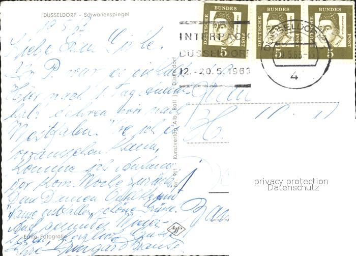 alte Postkarte Duesseldorf Schwanenspiegel postalisch gelaufen Erhaltung siehe scans