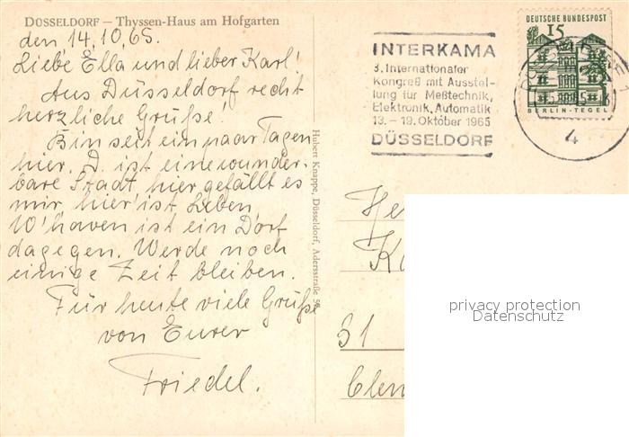73093990 alte Postkarte Duesseldorf Thyssen Haus Hofgarten postalisch gelaufen Erhaltung siehe scans [KathaD81] KatCode: 11110005111000