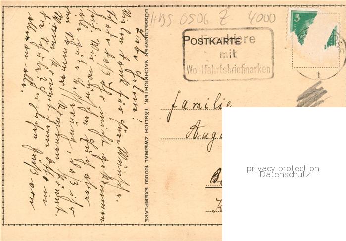 73521068 alte Postkarte Duesseldorf Verlagsgebaeude der Duesseldorfer Nachrichten Zeichnung postalisch gelaufen Erhaltung siehe scans [WerneD78] KatCode: 11110005111000