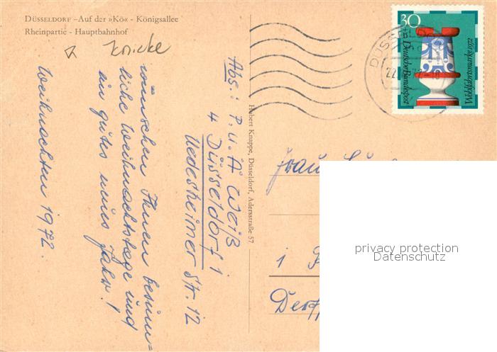 73124728 alte Postkarte Duesseldorf — postalisch gelaufen Erhaltung siehe scans [FriedD77] KatCode: 11110005111000
