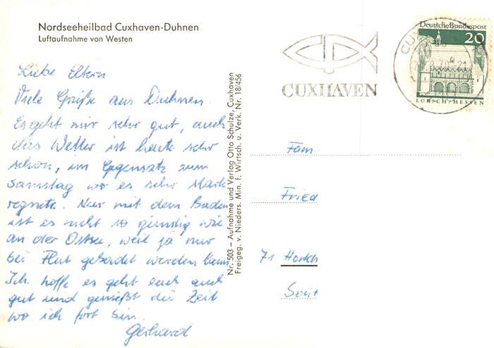 73944798 Duhnen Cuxhaven Fliegeraufnahme postalisch gelaufen Erhaltung siehe scans [WerneD78] alte Postkarte Wern Katcode 11110003352011