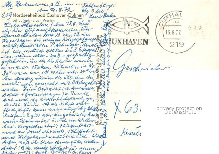 73713880 alte Postkarte Duhnen Cuxhaven Fliegeraufnahme postalisch gelaufen Erhaltung siehe scans [WerneD78] KatCode: 11110003352011