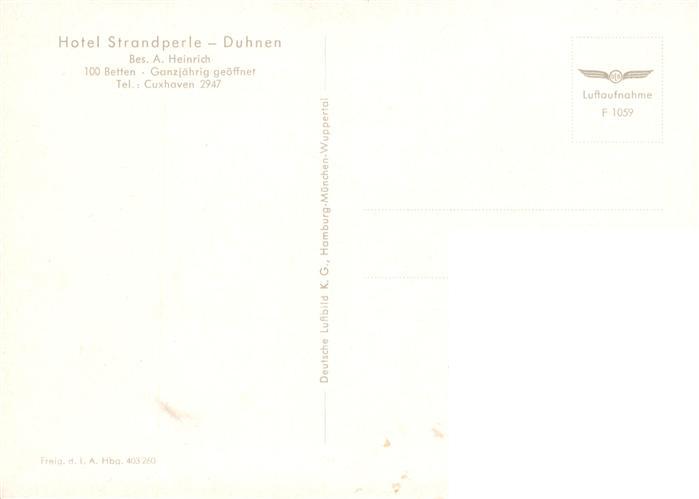 73904181 Duhnen Cuxhaven Fliegeraufnahme mit Hotel Strandperle postalisch nicht gelaufen Erhaltung siehe scans [WerneD78] Wern Katcode 11110003352011