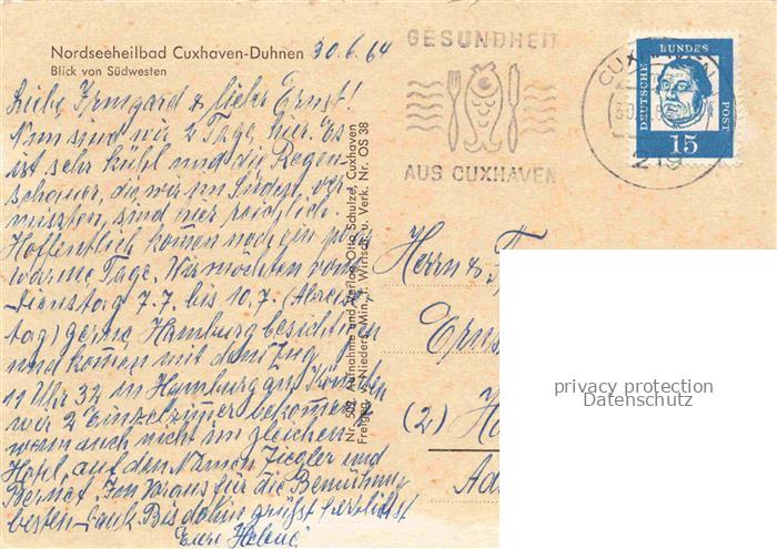74130831 alte Postkarte Duhnen Cuxhaven Nordseebad Niedersachsen Fliegeraufnahme postalisch gelaufen Erhaltung siehe scans [WerneD78] KatCode: 11110003352011