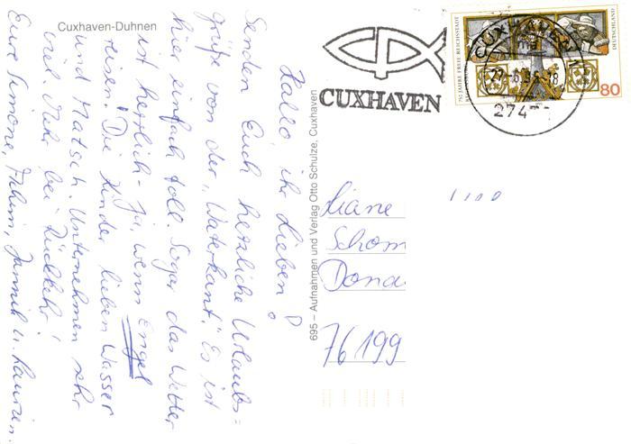 73926396 Duhnen Cuxhaven Wattwagenfahrt Meerwasserwellenbad Strand Promenade Alte Kate Nationalflaggen Weltkugel postalisch gelaufen Erhaltung siehe scans [FriedD77] alte Postkarte Frie Katcode 11110003352011