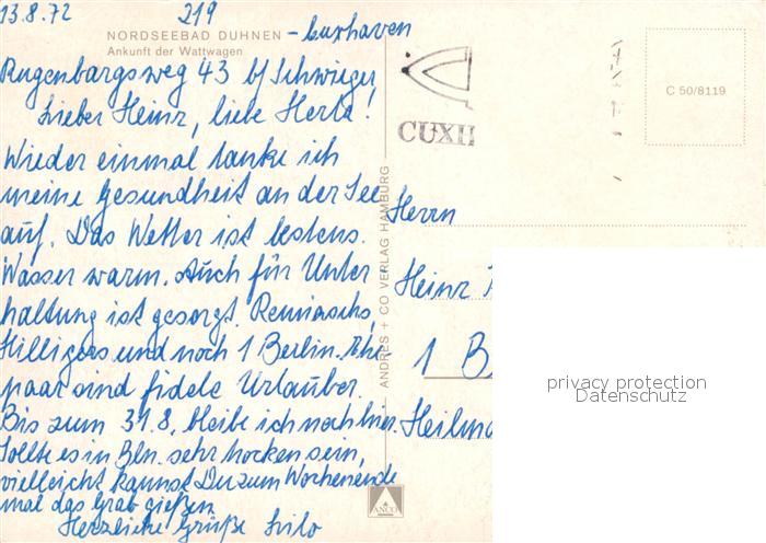 73296626 alte Postkarte Duhnen Nordsee Ankunft der Wattwagen postalisch gelaufen Erhaltung siehe scans [FriedD77] KatCode: 11110003352011