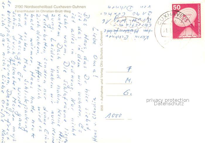 73659657 alte Postkarte Duhnen Nordsee Ferienhaeuser am Christian Bruett Weg postalisch gelaufen Erhaltung siehe scans [FriedD77] KatCode: 11110003352011