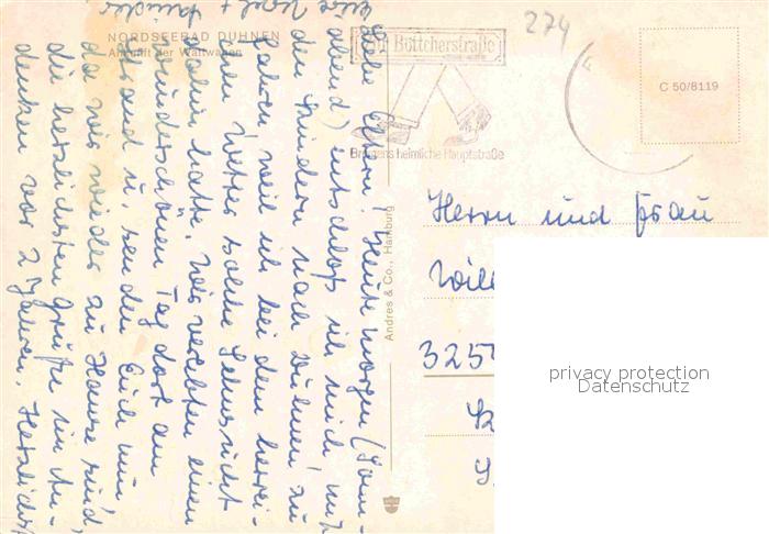 72670246 alte Postkarte Duhnen Nordsee Promenade Pferde-Wattwagen postalisch gelaufen Erhaltung siehe scans [LiesaD40] KatCode: 11110003352011