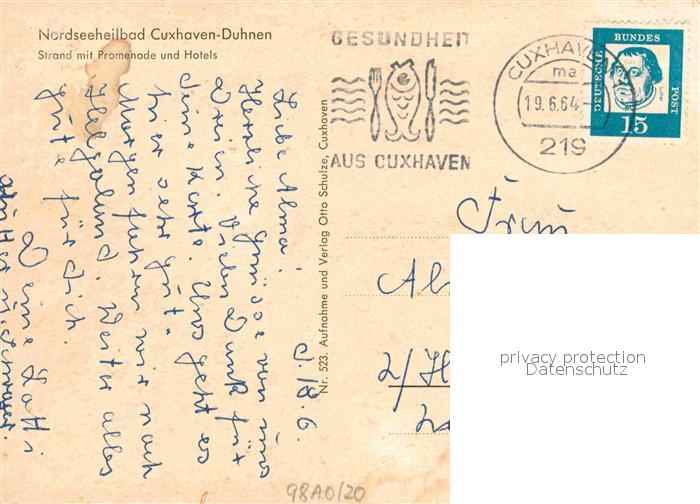 72912269 alte Postkarte Duhnen Nordsee Strand mit Promenade und Hotels postalisch gelaufen Erhaltung siehe scans [FriedD77] KatCode: 11110003352011