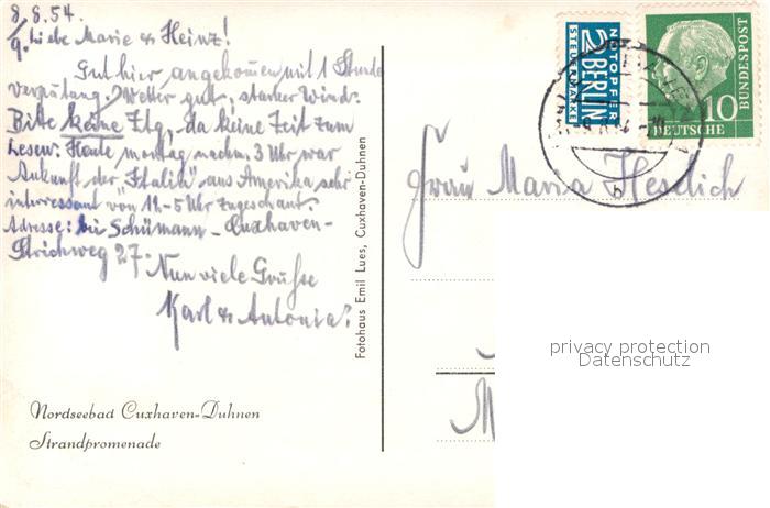 72981956 alte Postkarte Duhnen Nordsee Strandpromenade postalisch gelaufen Erhaltung siehe scans [FriedD77] KatCode: 11110003352011