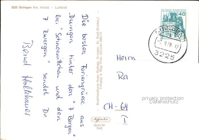 72555589 alte Postkarte Duingen Fliegeraufnahme postalisch gelaufen Erhaltung siehe scans [AndreD76] KatCode: 11110003254037