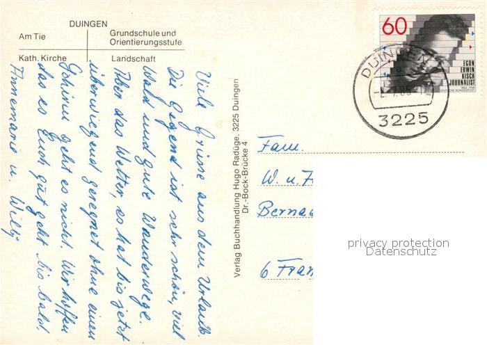73234164 alte Postkarte Duingen Tie Kirche Schule postalisch gelaufen Erhaltung siehe scans [KathaD81] KatCode: 11110003254037