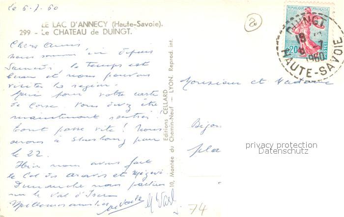 13488889 carte postale Duingt Chateau au Lac d Annecy postalisch gelaufen Erhaltung siehe scans [FriedD77] KatCode: 11170074174108