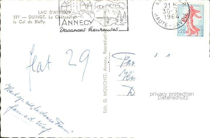 12306886 carte postale Duingt Chateau Col de Bluffy postalisch gelaufen Erhaltung siehe scans KatCode: 11170074174108